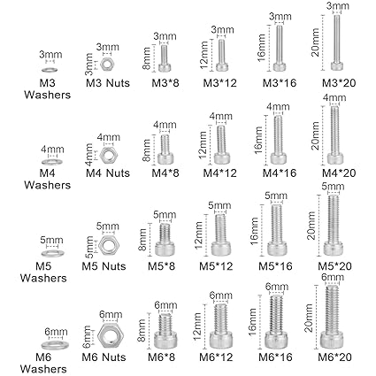 280pcs M3 Alloy Steel Grade12 9 Hex Socket Cap Head Bolt Screw Nut Assortment Kit With Storage Box 4 5 6 8 10 12 16 20 25mm Length Amazon In Industrial Scientific